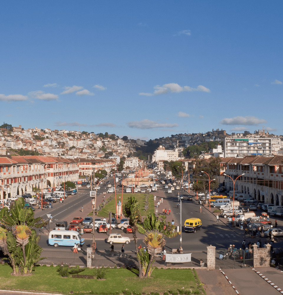 Antananarivo, capitale de Madagascar, est le cœur politique, économique et culturel de la Grande Île. Située à 1 280 mètres d'altitude sur les Hautes Terres centrales, « la Ville des Mille » s'étend sur les collines d'Analamanga et offre un panorama unique sur toute la région. Avec plus de 1,3 million d'habitants, Antananarivo s'impose comme une métropole dynamique en pleine expansion, carrefour stratégique entre l'Afrique et l'océan Indien. La ville conjugue un riche patrimoine historique, symbolisé par le Palais de la Reine (Rova), et une modernité croissante portée par le développement des technologies et des services. Un emplacement stratégique pour accompagner les entreprises malgaches et internationales dans leur transformation digitale.